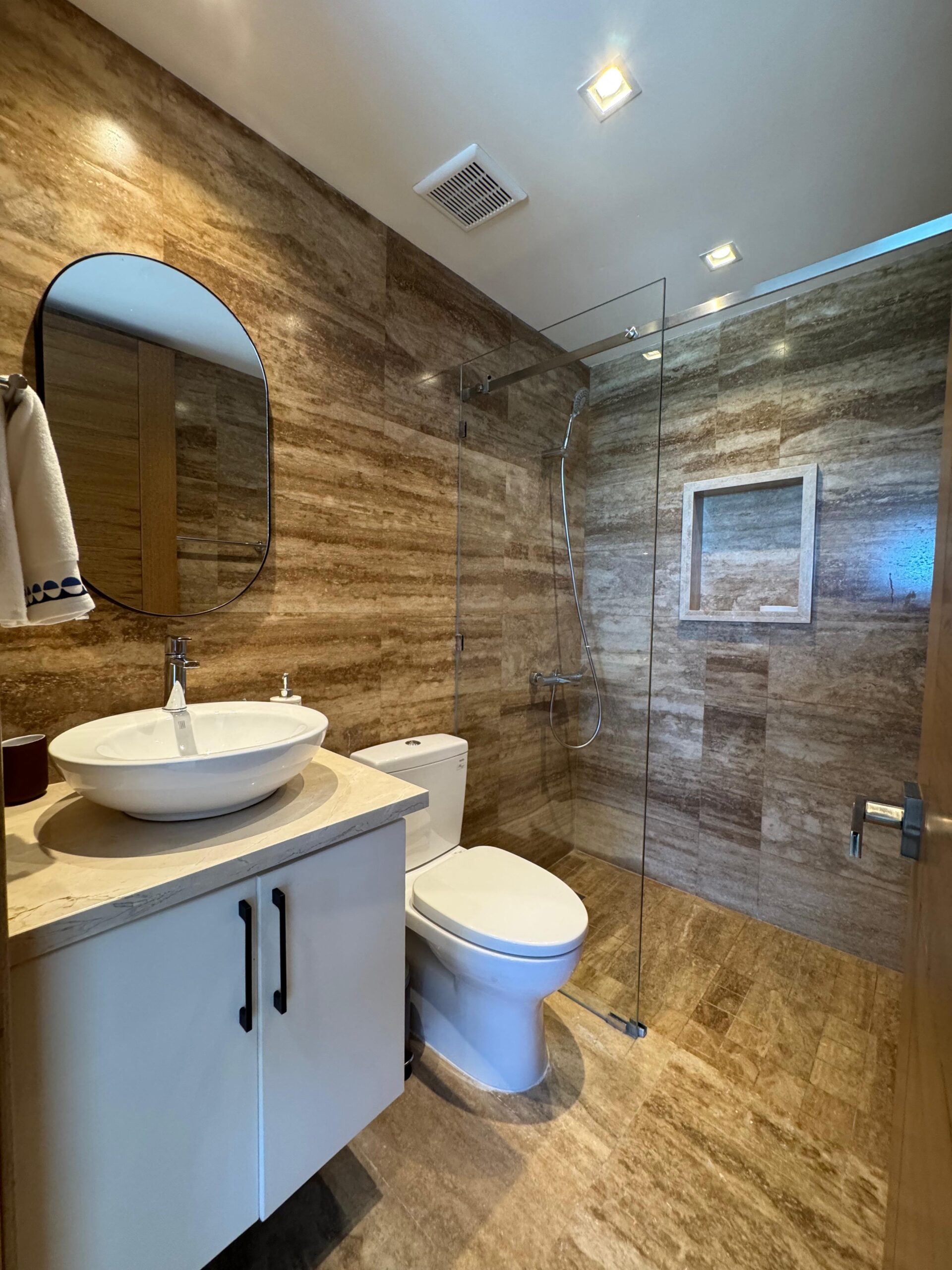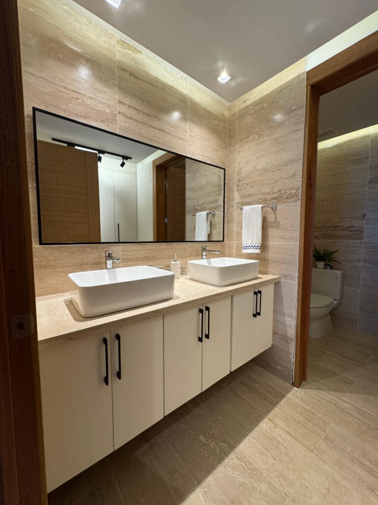 Paredes de baños revestidas en coralina importada