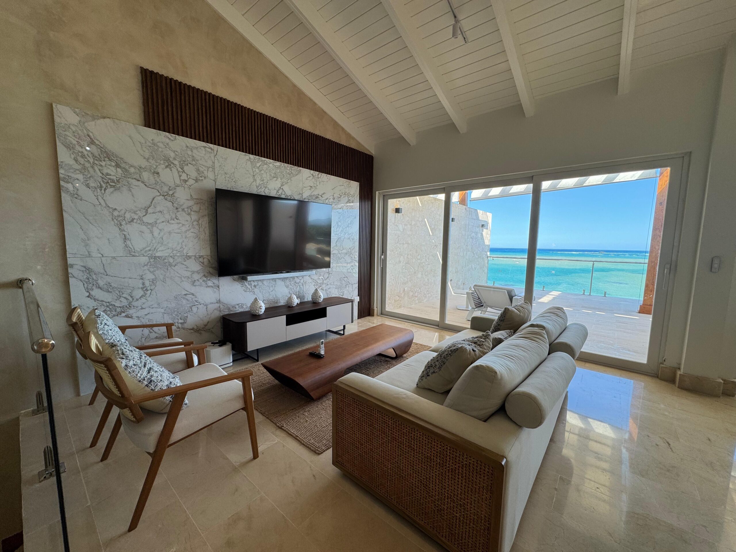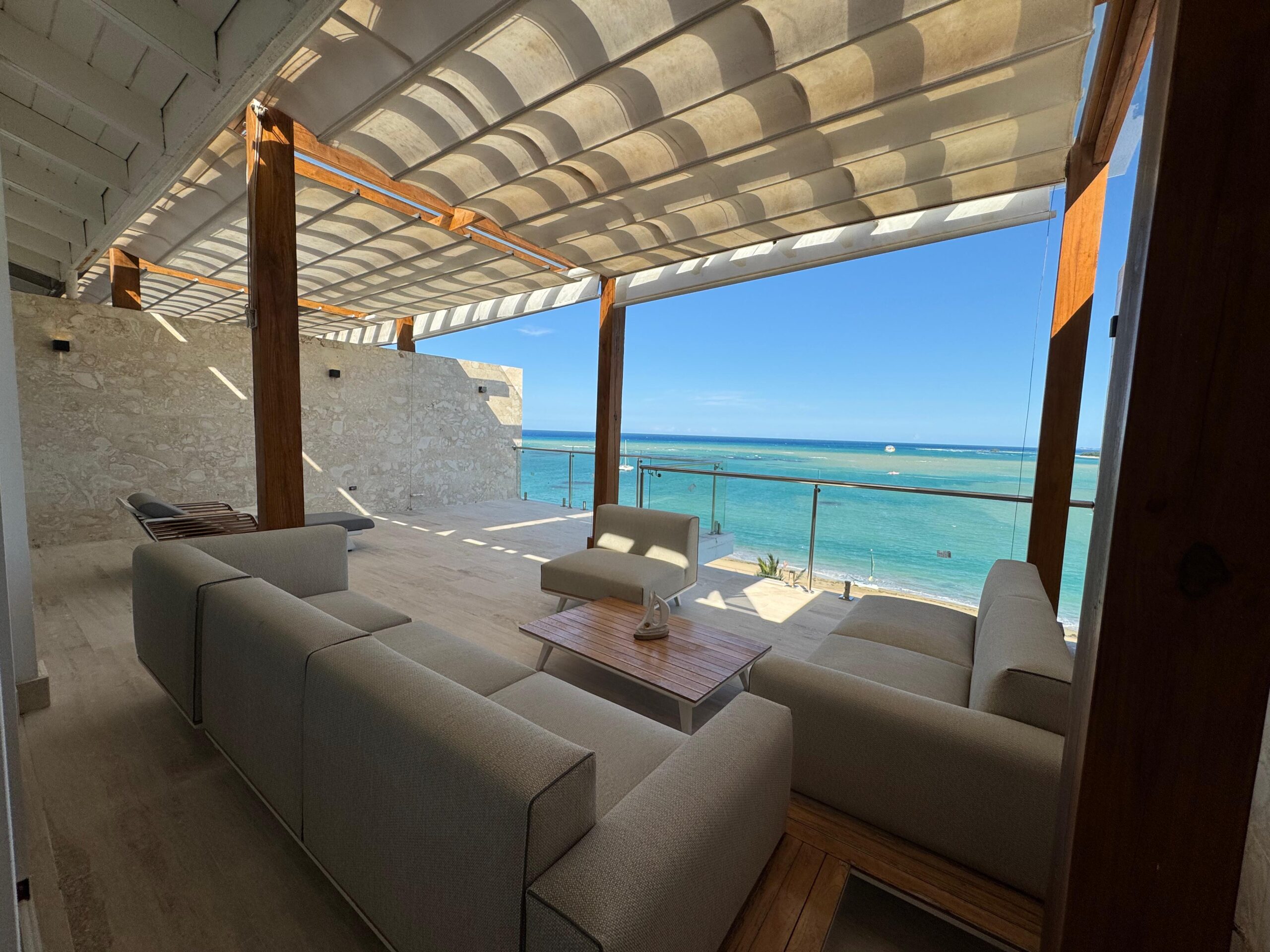 Extraordinario penthouse completamente amueblado, ubicado en un residencial turístico de primera, en la primera línea de playa. Disfrute de una vista panorámica al océano y la montaña.