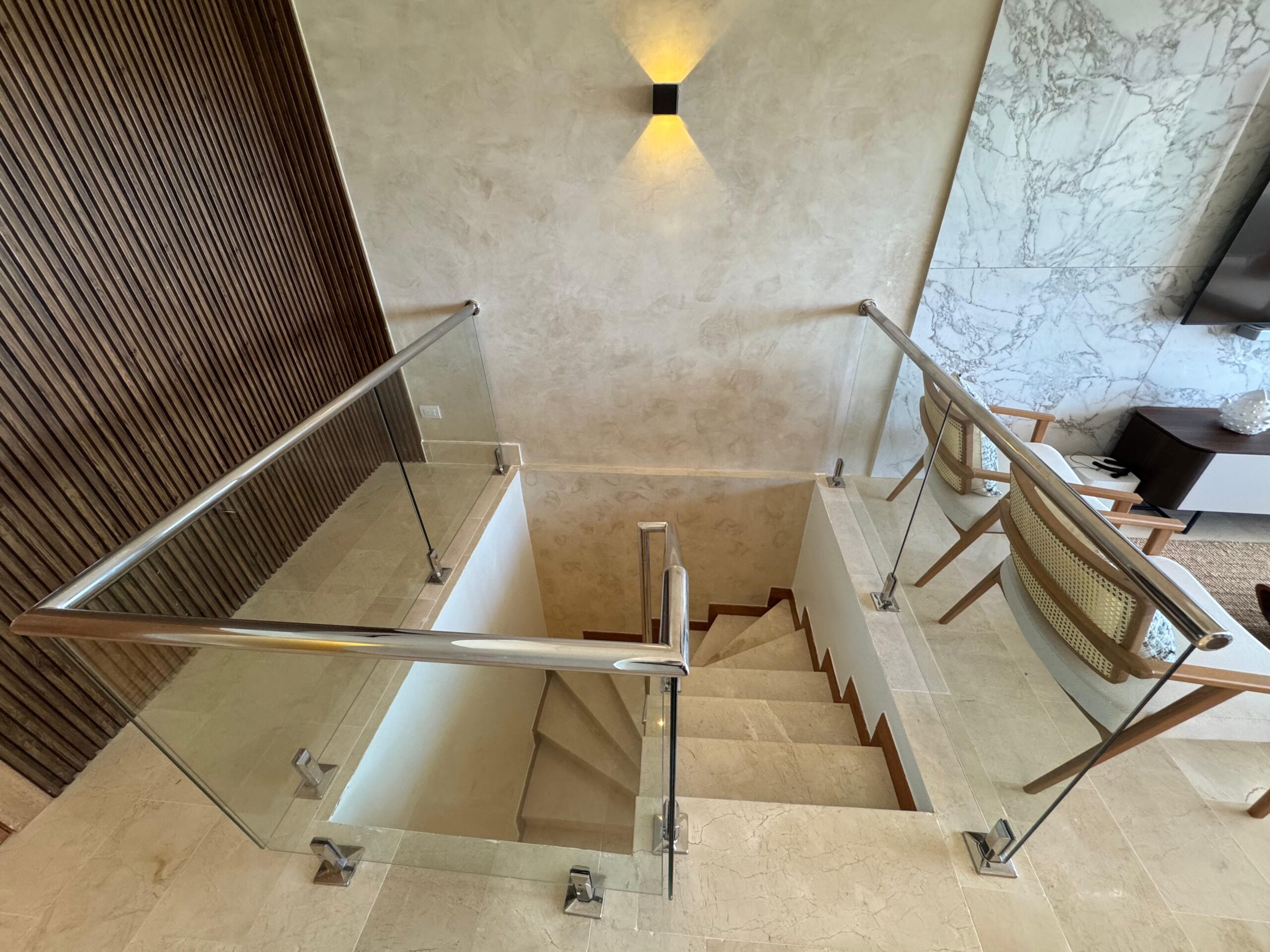 Barandas de escalera en acero inoxidable y cristales de lujo