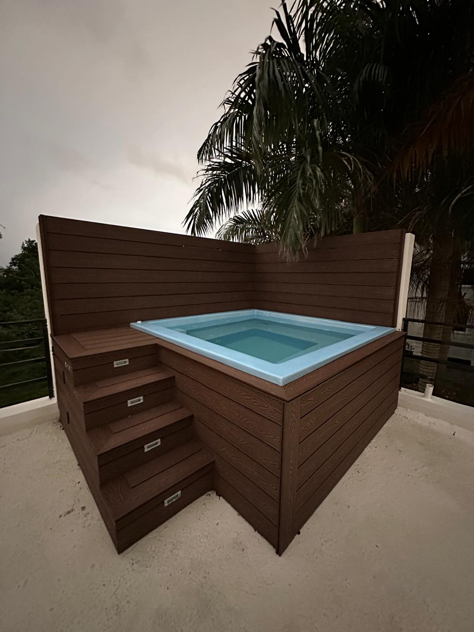 Escalera hecha para que aprovechen el techo con Picuzzi, Gazebo y baranda.